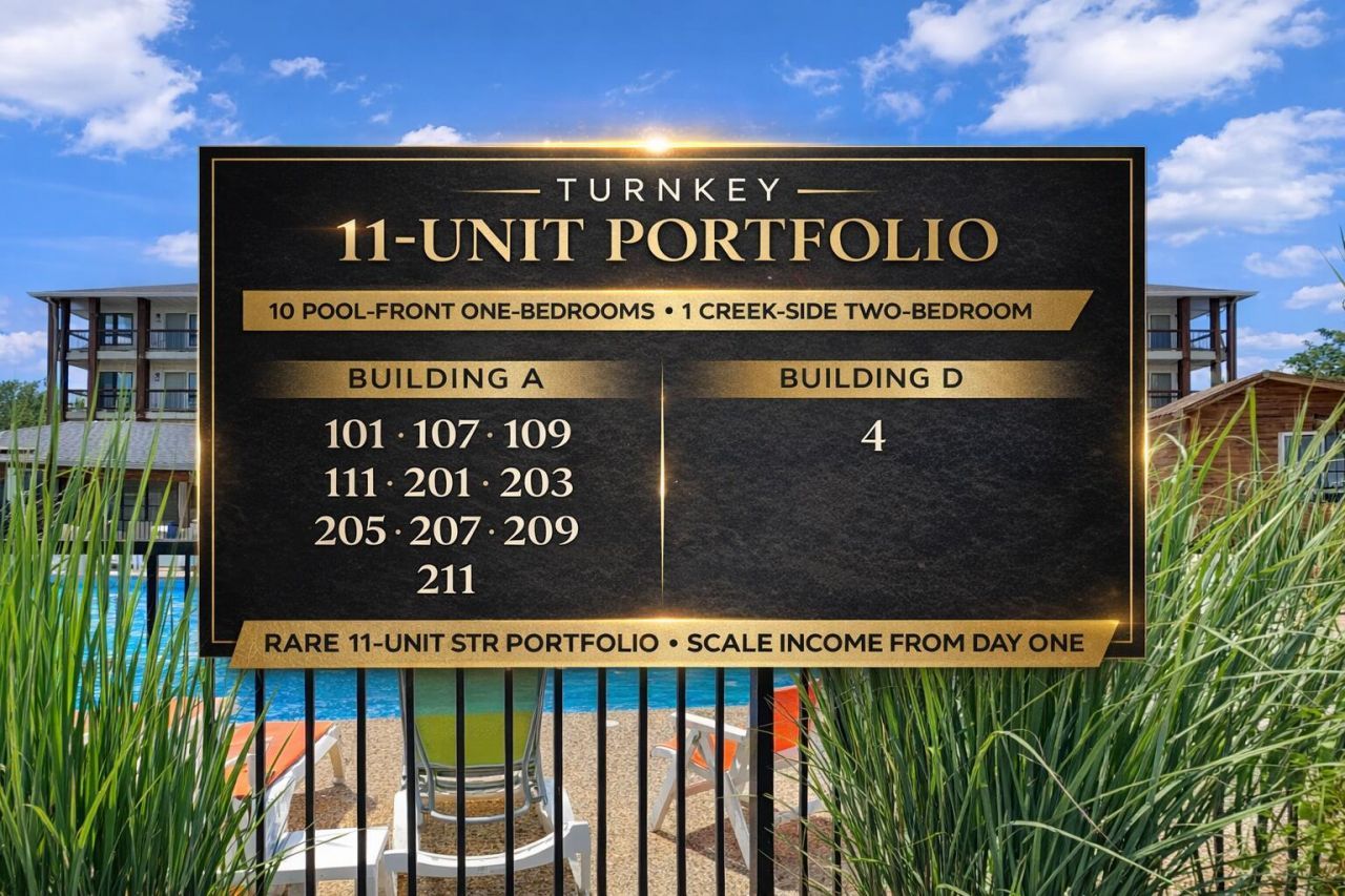 This 11-unit portfolio offers a turnkey, income-producing opportunity in one of Branson's most in-demand nightly rental locations. The package includes 10 pool-front one-bedroom condos in Building A and one two-bedroom unit positioned directly on Roark Creek. All units are being sold fully furnished with no management restrictions, allowing for immediate operation and flexibility in management strategy.Located within walking distance to Branson Landing and historic downtown, the property consistently attracts strong rental demand driven by its proximity to shopping, dining, and entertainment. The COA provides desirable amenities including indoor and outdoor pools, a large fitness center, and access to the Roark Creek dock, with water, electric, and sewer included in the monthly fee.This portfolio presents a rare opportunity to scale an existing rental footprint in a prime location, with the added benefit of optional owner use when units are not occupied.